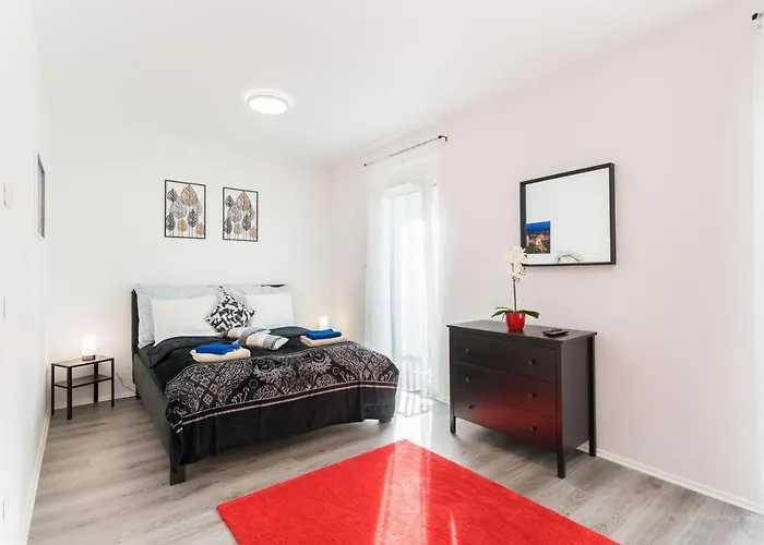 Esta propiedad ofrece a sus huéspedes una zona de estar, así como comodidades tan modernas como climatizador. Para mayor comodidad, el New Blue Danube Apartment With Balcony And Parking cuenta con una ducha a ras de suelo y un inodoro separado. El cuarto de baño dispone de secador de pelo y toallas.